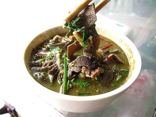 还有血,被侗家人认为是最有生命力的东西,猪牛心头里的热血甚至可以直接生吃,那鲜红鲜红的紫血就成了侗族饮食中最富有挑战性的菜谱,也叫勇者味道。血,与人格、尊严等精神层面有关,属形而上的东西。说你“有血”(侗文:maegc padt),赞誉你有种有骨气;说你“脸上没有血”(侗文:nas haic maegc padt)要小心了,那是鄙视你不要面子,没有人性。