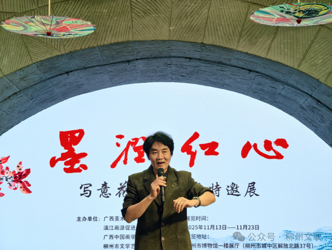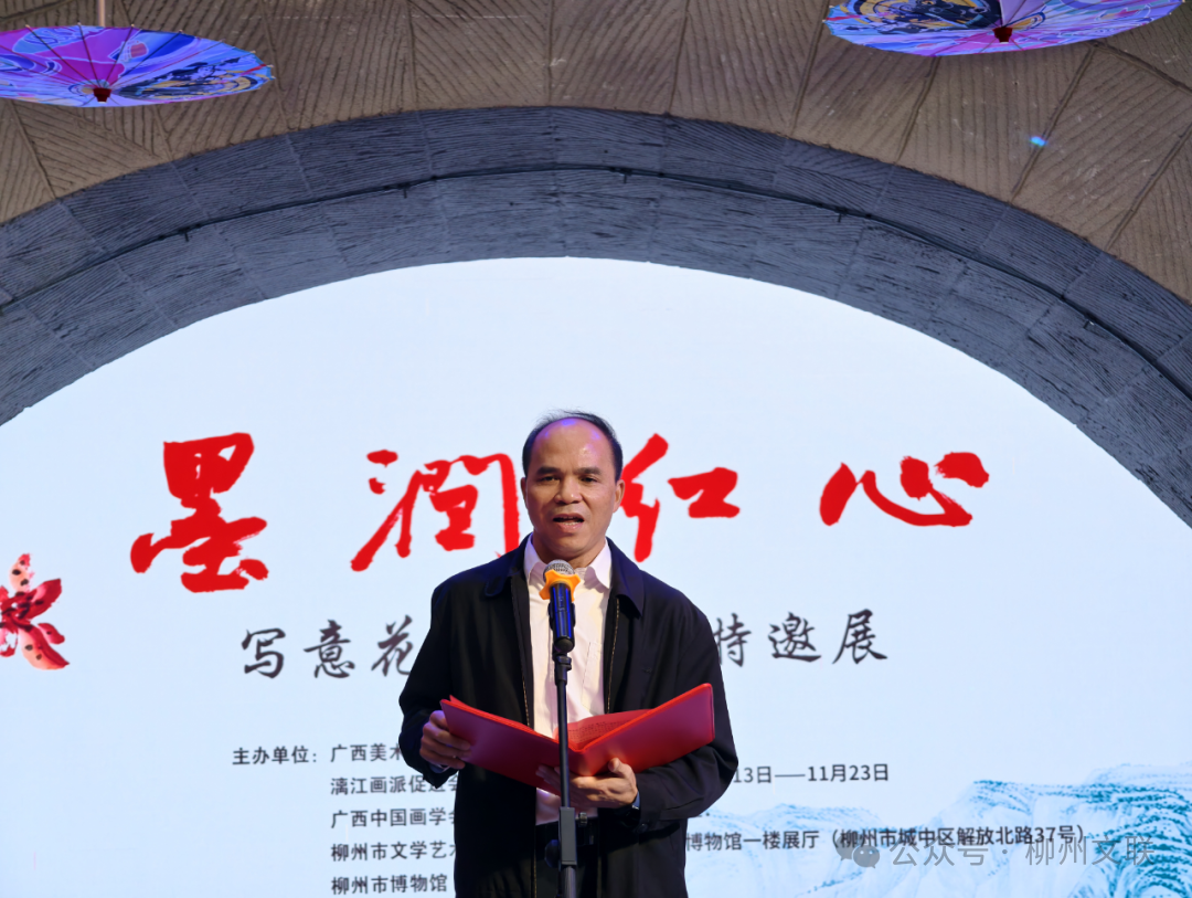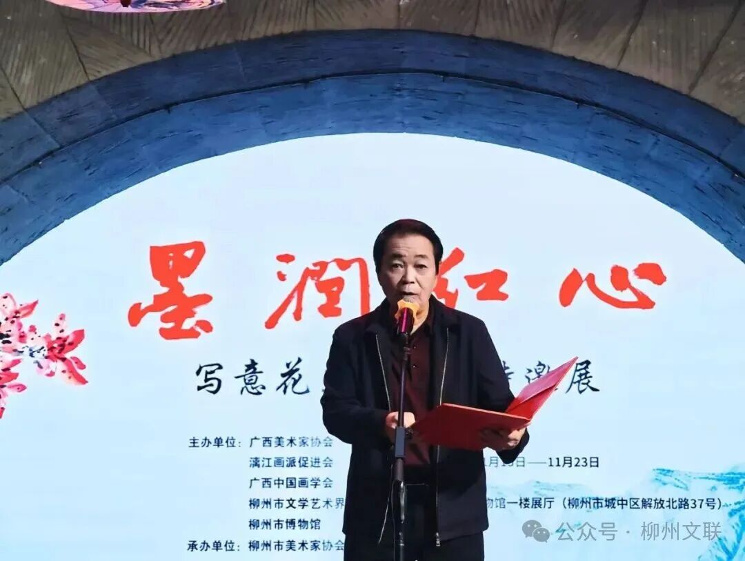 11月13日下午,“墨润红心——写意花鸟画作品特邀展”在柳州市博物馆开幕。展览由广西美术家协会、漓江画派促进会、广西中国画学会、柳州市文学艺术界联合会、柳州市博物馆共同主办,集中展出以欧顺红、苏红两位艺术家为代表的60多幅写意佳作,生动展现了柳州画家以笔传情、以墨载道的艺术追求,吸引了众多文艺爱好者及市民观众前来观看。