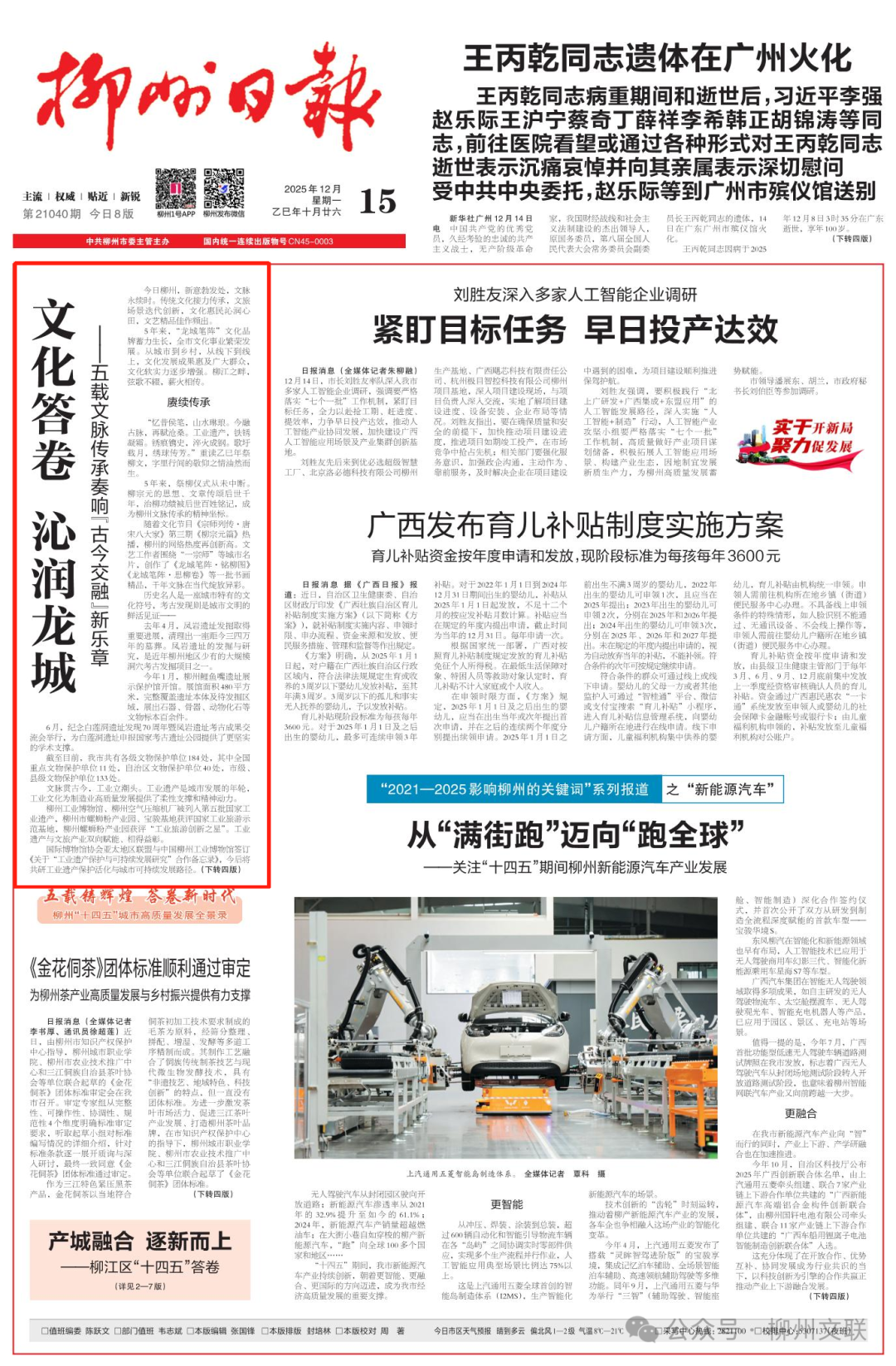 《柳州日报》(2025年12月15日 第01版)