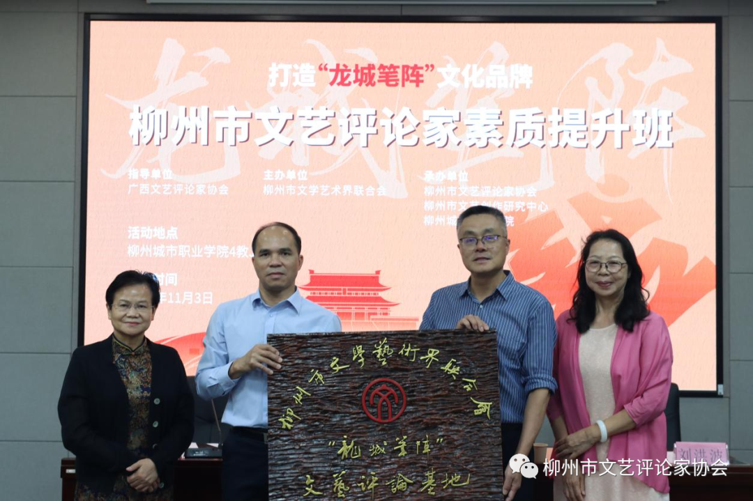 11月3日,由广西文艺评论家协会指导,柳州市文学艺术界联合会主办,柳州市文艺评论家协会、柳州市文艺创作研究中心、柳州城市职业学院承办的柳州市文艺评论家素质提升班在柳州城市职业学院开班,来自全市各地文艺创作和评论领域的30多名学员和柳州城市职业学院的70多名师生参加培训。市委常委、宣传部部长甘毅高度重视此次文艺评论培训,培训期间会见了导师们和文联领导,并对提升班寄予厚望。